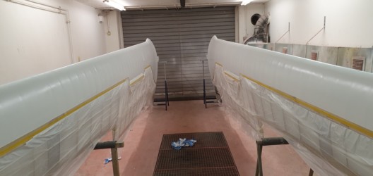 Es findet sich hier alles nötige Werkzeug, Druckluftanschluss und auch eine Grube für die Arbeit an unseren Fahrzeugen, die Seilwinde und die Anhänger zum Transport der Segler.